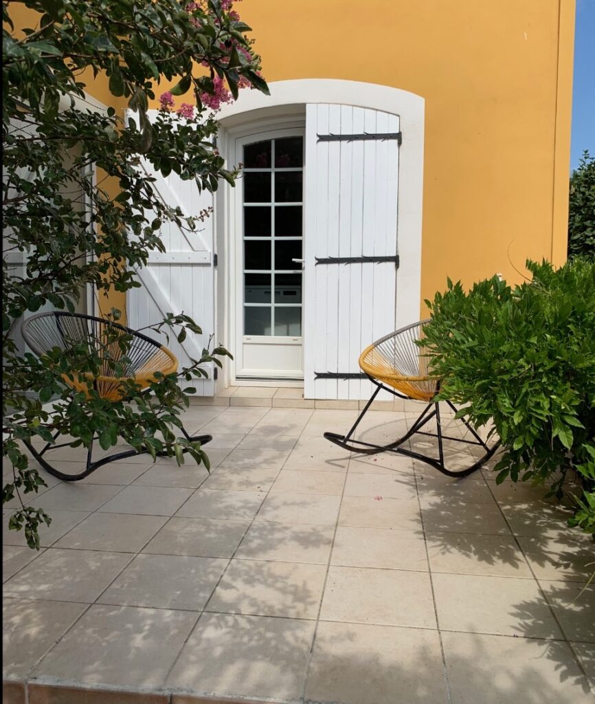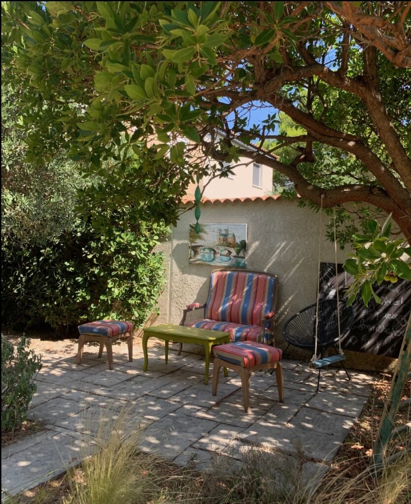 La piscine (au chlore) est sécurisée avec une clôture, une douche extérieure avec 2 cabanons de jardin. Le jardin est intime avec de nombreux fruitiers (pommier, arbousier, abricotier, olivier, néflier) avec un espace potager (avec un puit équipé d’une pompe pour arroser).
